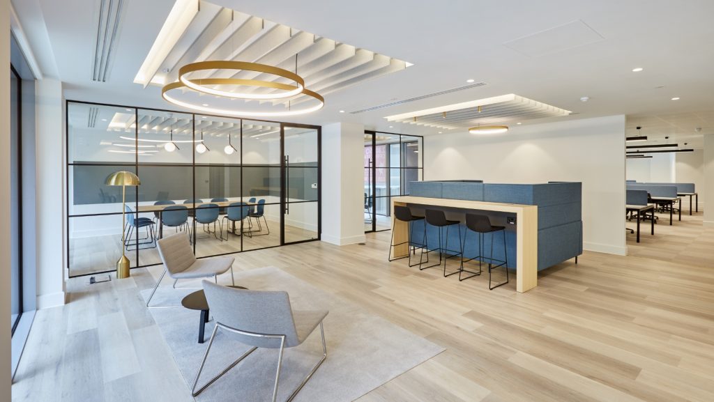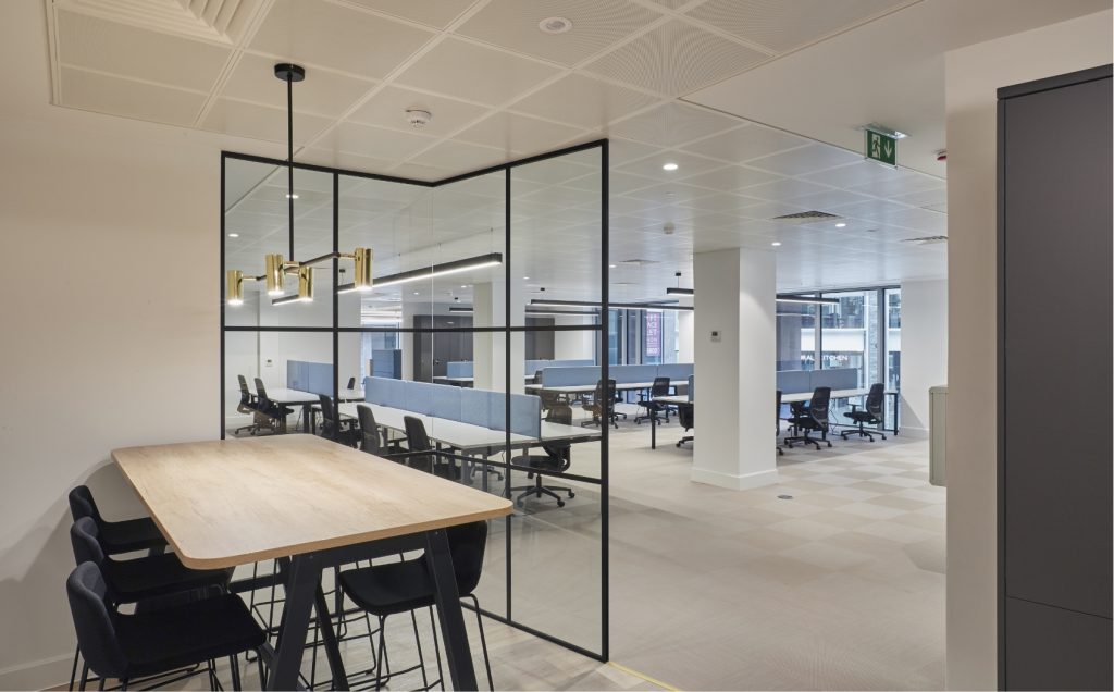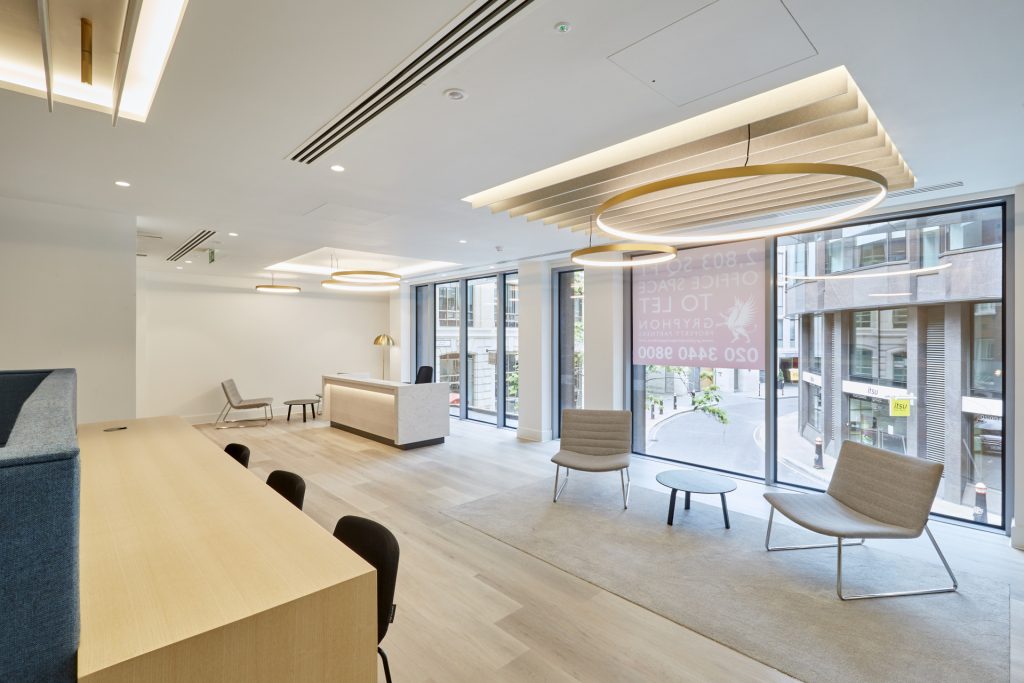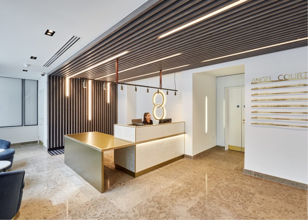 This CAT A & A+ fit out at 8 Angel Court involved the refurbishment of the main communal reception area whilst retaining certain features. A planning application was required for a new external portal to provide a more prominent arrival experience, along with signage and branding. The space let immediately as it was highly appealing to new tenant occupiers.