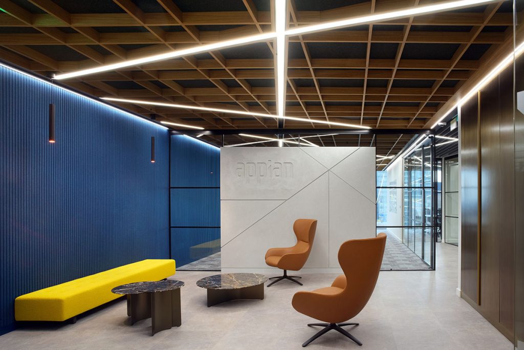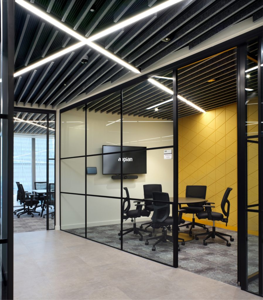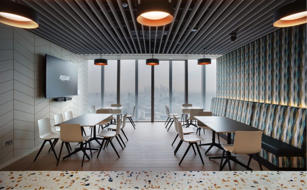 A new 8,000 sq.ft London HQ for leading process automation company Appian. Initially looking at refurbishing their existing space, but following an extensive building search, accompanied by some initial test plans options, the 25th floor at 20 Fenchurch became the first choice. The project driver was to put staff and their wellbeing first, ensuring they bring people back to the workplace, attract new talent & retain existing.