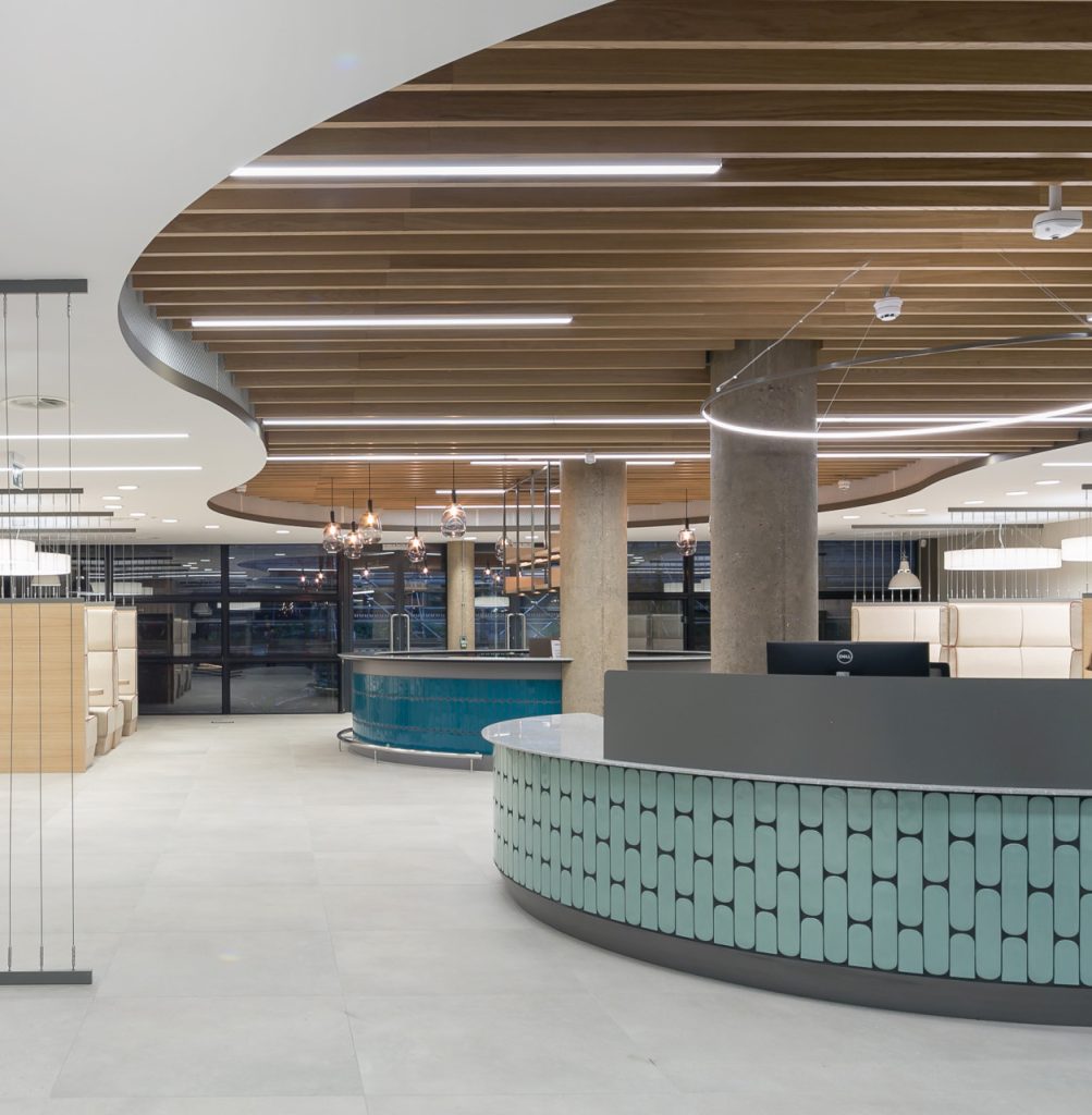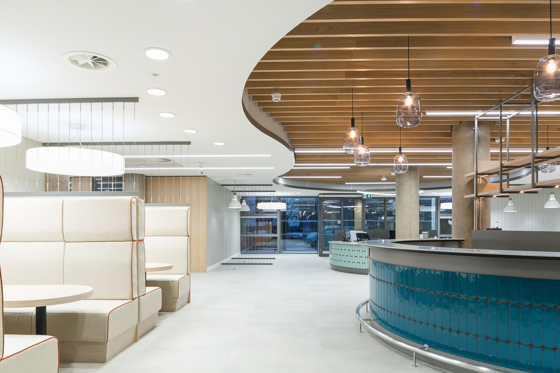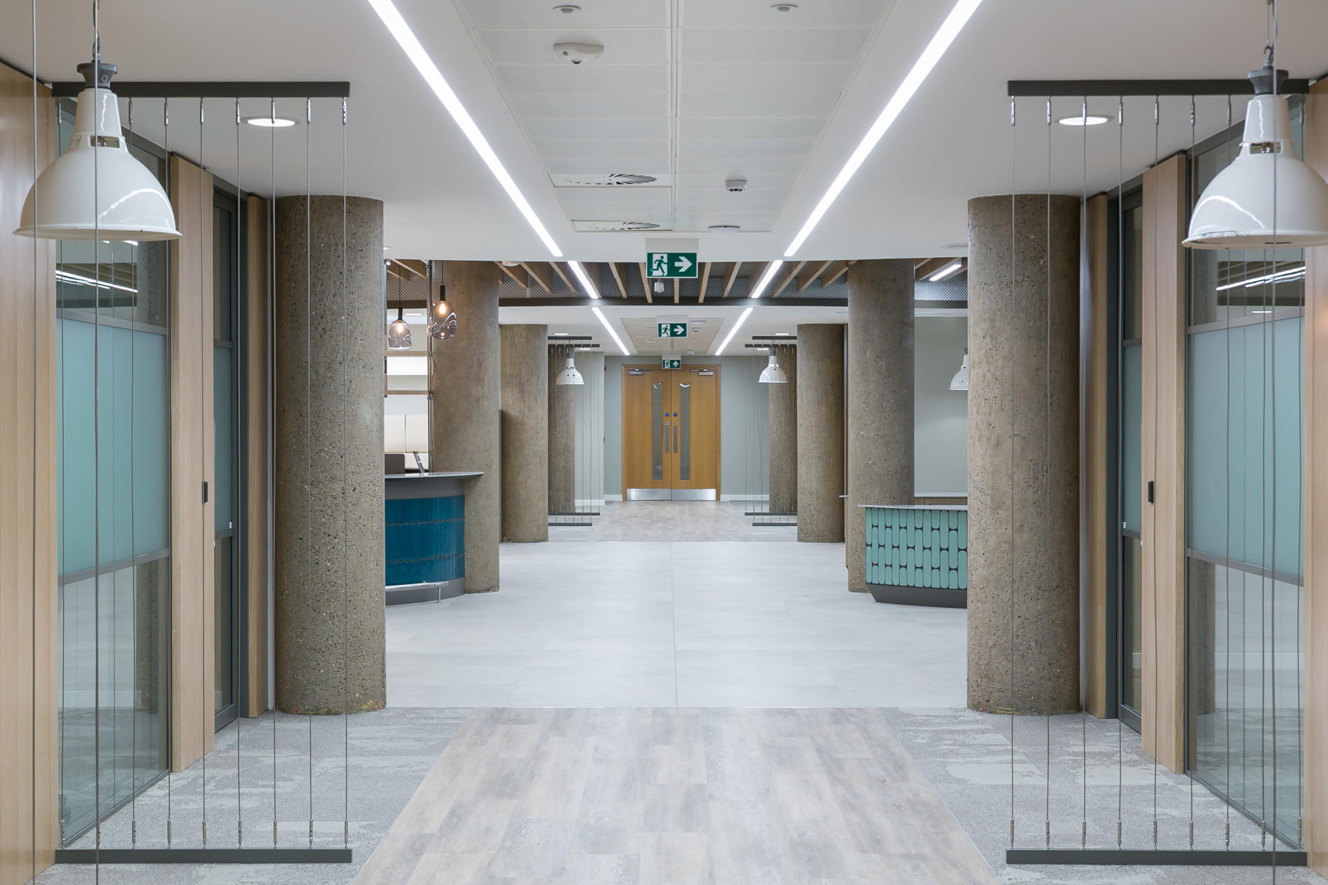 The design also incorporated a new main entrance with external walkway along with a purpose designed reception and coffee break out area with four large offices / meeting areas on the ground floor. All toilets were refurbished along with main communal staircases.